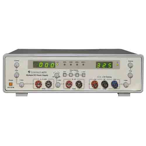 Scientech 4074 Multiple Outputs DC Power Supply is designed as a Constant Current (CC) and Constant Voltage (CV) source for use in laboratories, industries and field testing. With compact size, light weight and low power loss, it provides DC output voltages for Analog and Digital testing.