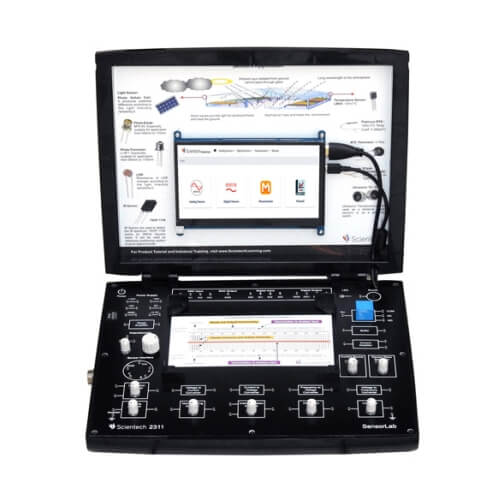 Scientech 2311 SensorLab comprises of sensors and transducers which provide the fundamental knowledge of sensing light, pressure, temperature, IR and many more non electrical entities.